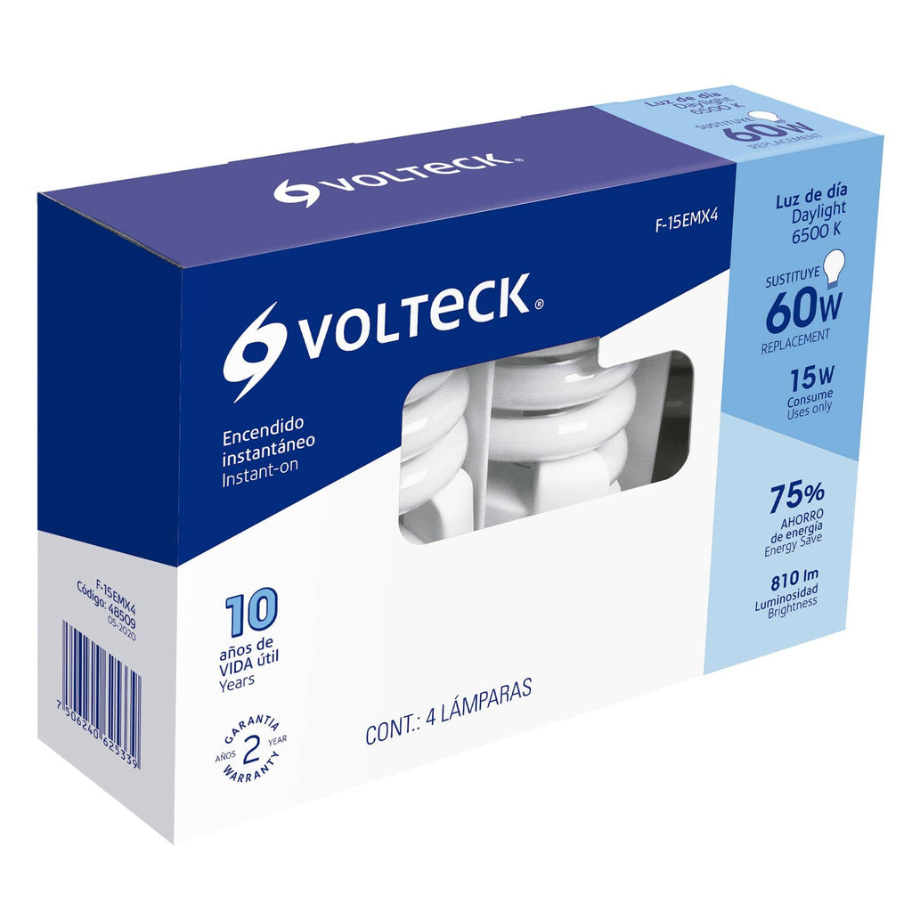 Lámpara 15 W, espiral mini, luz día, T2, en blíster 4 piezas