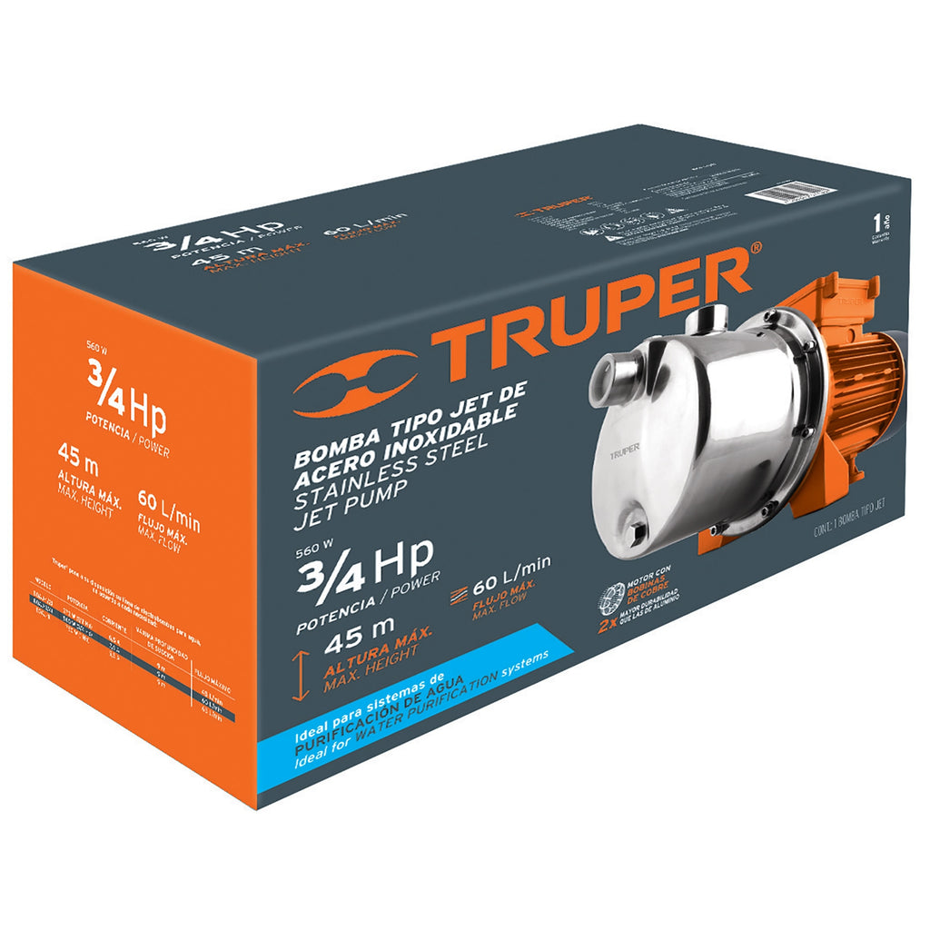 Bomba eléctrica tipo jet para agua, acero inoxidable, 3/4 HP