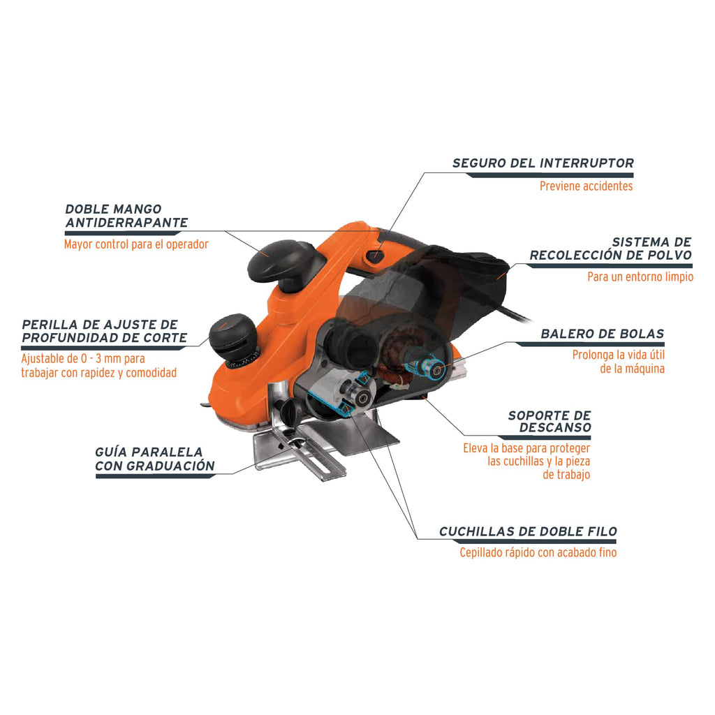 • Perilla de ajuste de profundidad con capacidad de corte de 0-3 mm