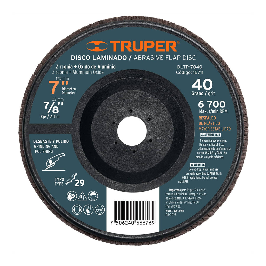 Disco laminado 7' respaldo plástico barreno 7/8'grano 60
