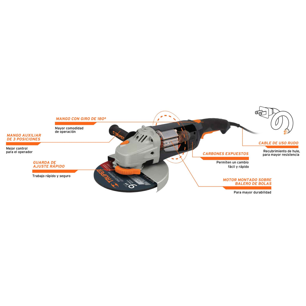 - Motor de 2300 W, montado sobre balero de bolas para mayor vida útil y mejor desempeño