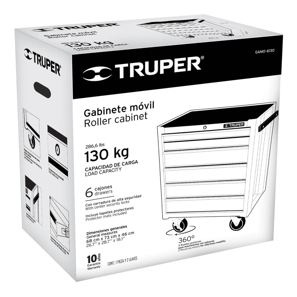 Gabinete metálico móvil, 6 cajones, capacidad 130 kg.