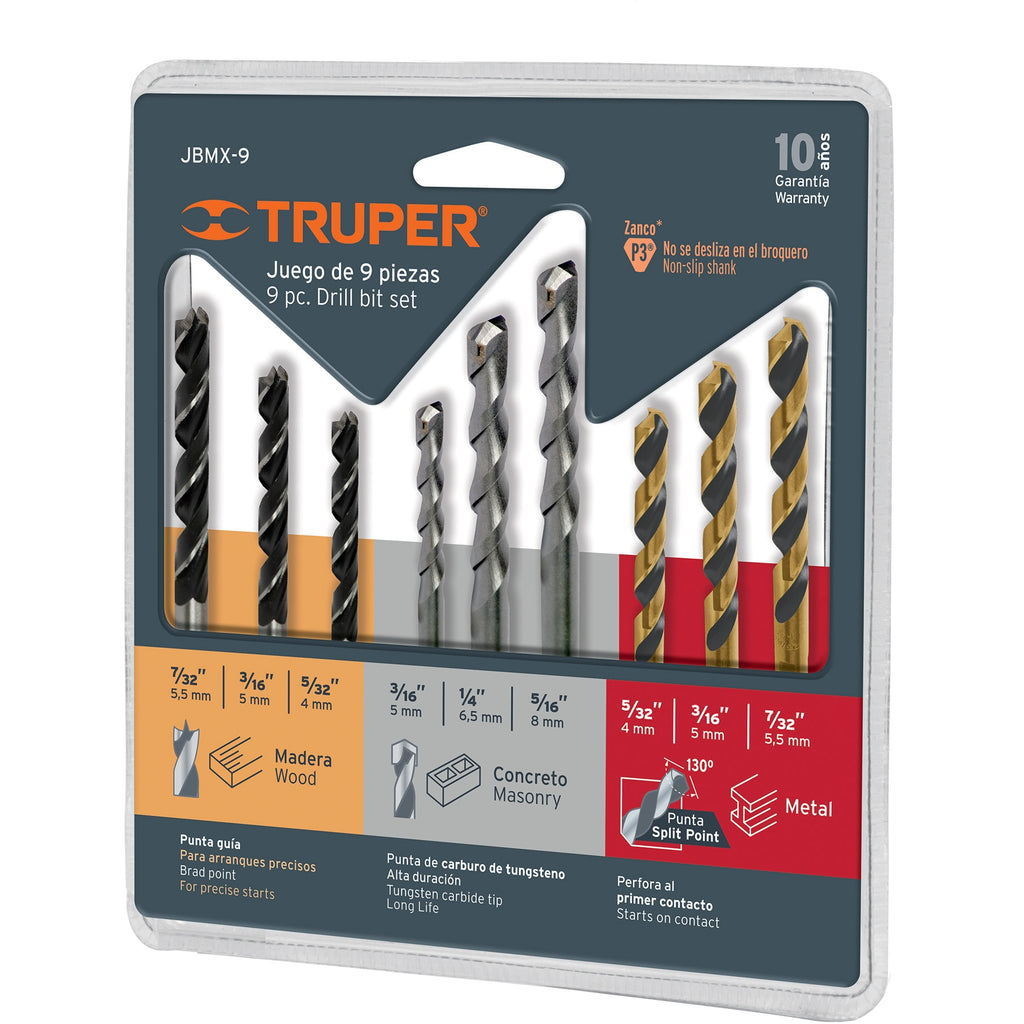 Juego de brocas mixto, 9 piezas