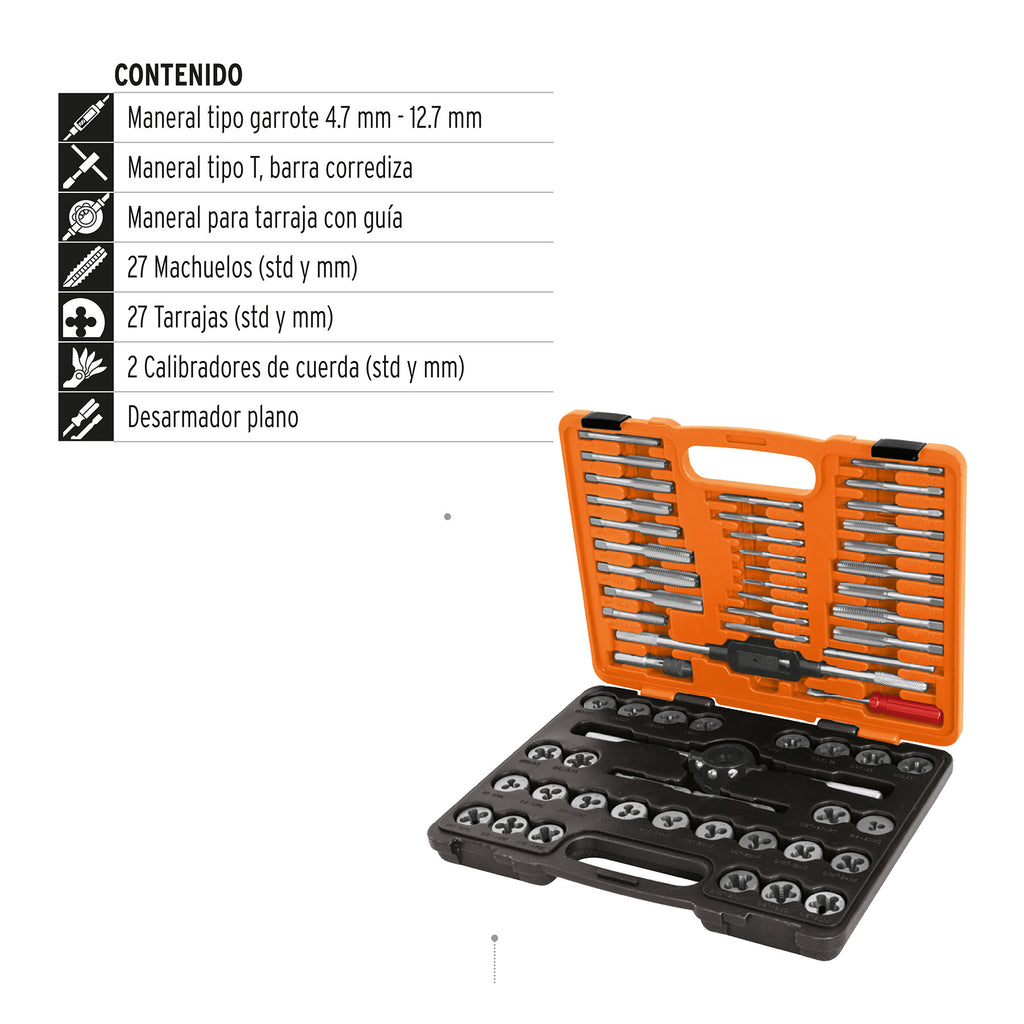 Juego de machuelos y tarrajas, 60 piezas