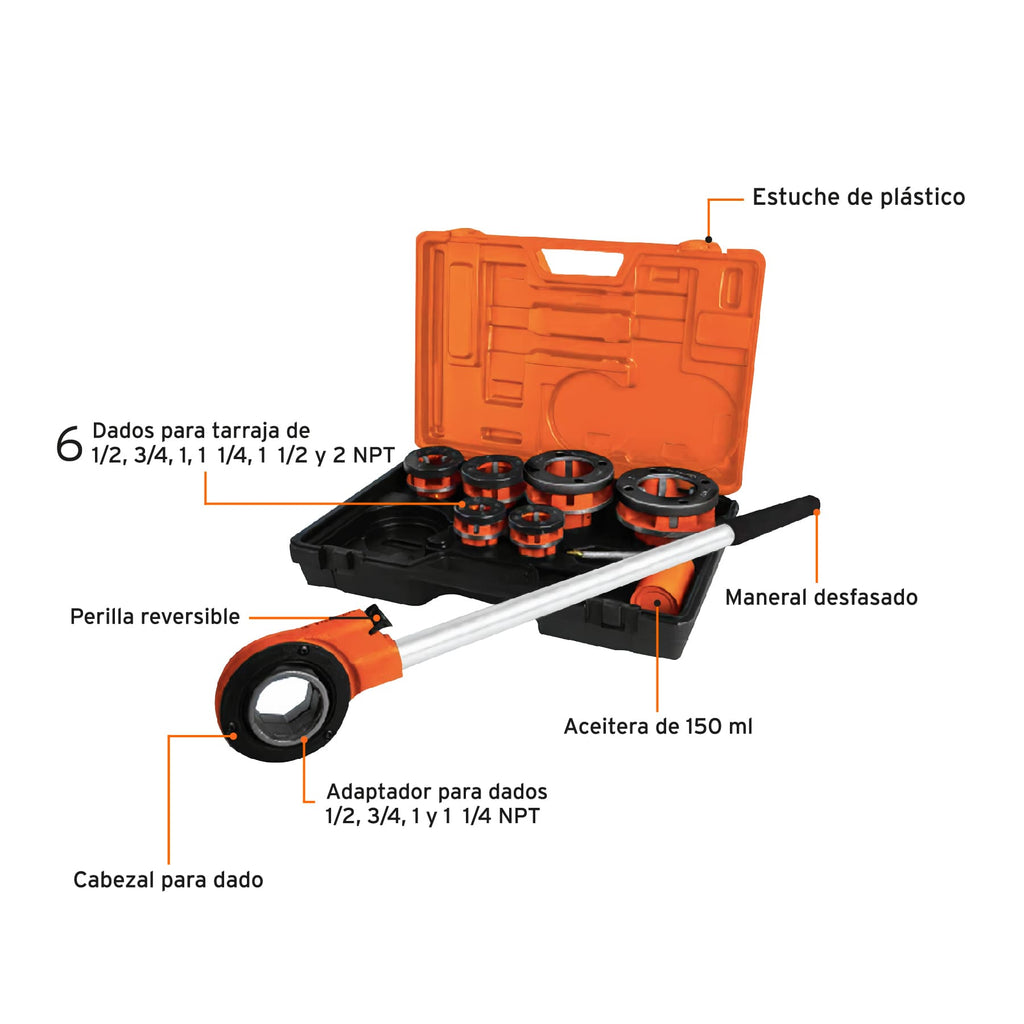 Juego de tarrajas para tubo, 9 piezas
