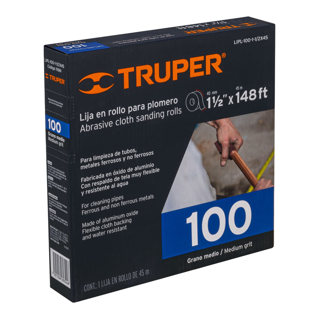 Lija para plomero grano 100, ancho 1-1/2', rollo de 45 m