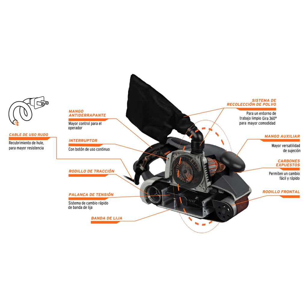 Lijadora de banda 4 x 24', Industrial, 1200 W